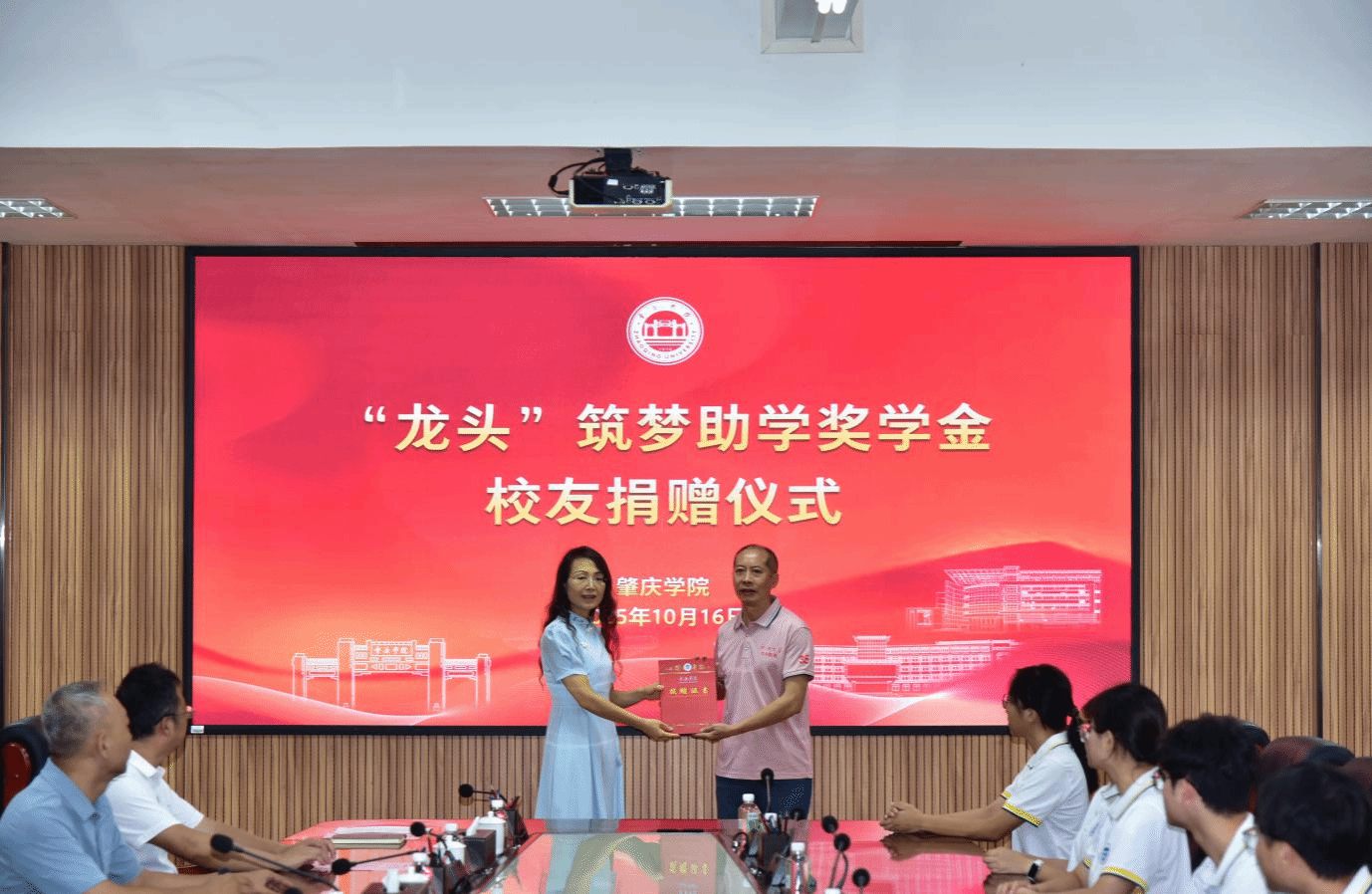 本网讯 10月16日,我校举行“龙头”筑梦助学奖学金校友捐赠仪式。1993届校友、肇庆龙头电器科技股份有限公司董事长黎俊炫自今年起每年向母校捐赠10万元、连续捐赠5年,用于电子与电气工程学院贫困学子的助学奖学。