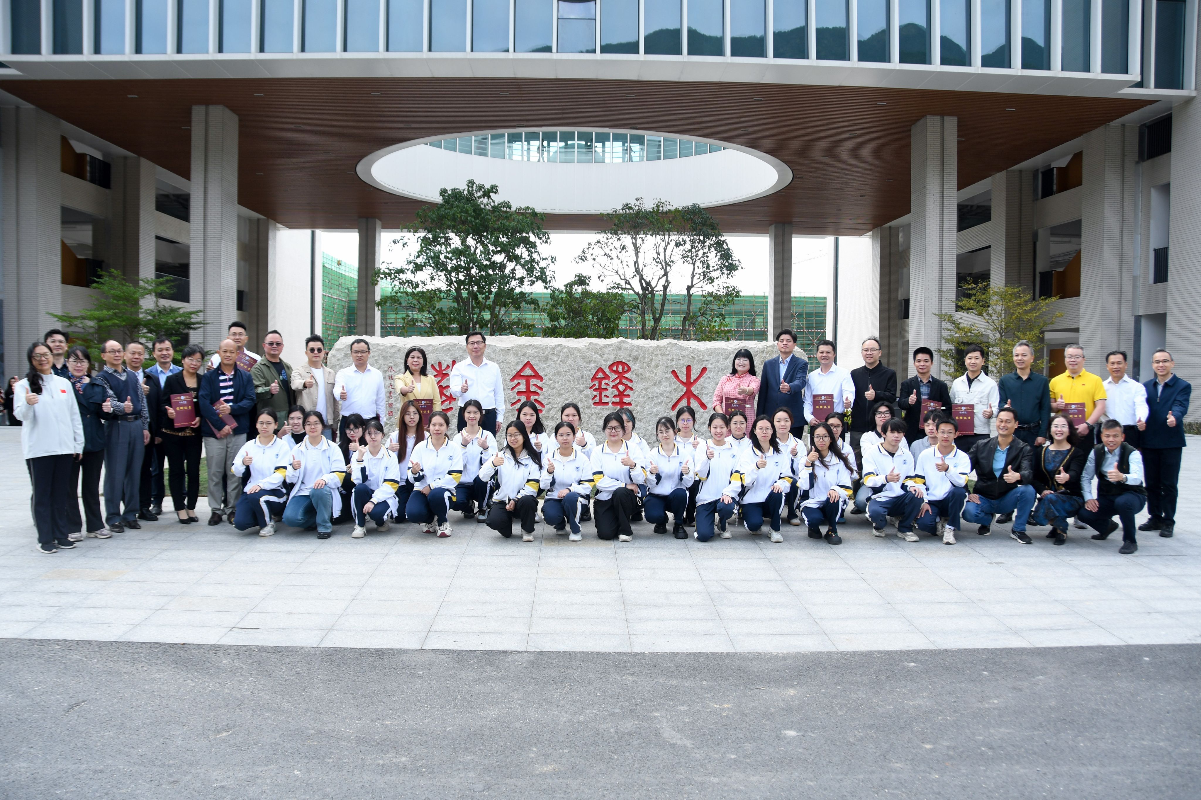 揭牌仪式结束后,现场领导、捐赠校友与学生代表在“木铎金声”文化石前合影留念。