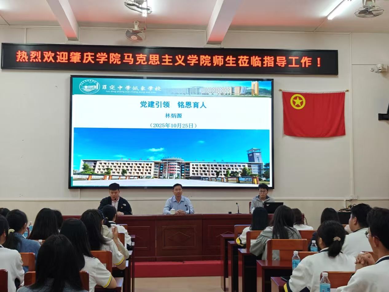 本网讯 10月25日,马克思主义学院结合学校办学55周年系列活动安排和“三所学校”帮扶工作,组织师生赴罗定中学城东学校开展调研学习。活动中,学院特邀了思政专业校友罗定中学城东学校党委书记林炳源与在场师生开展专题讲座和学习交流。