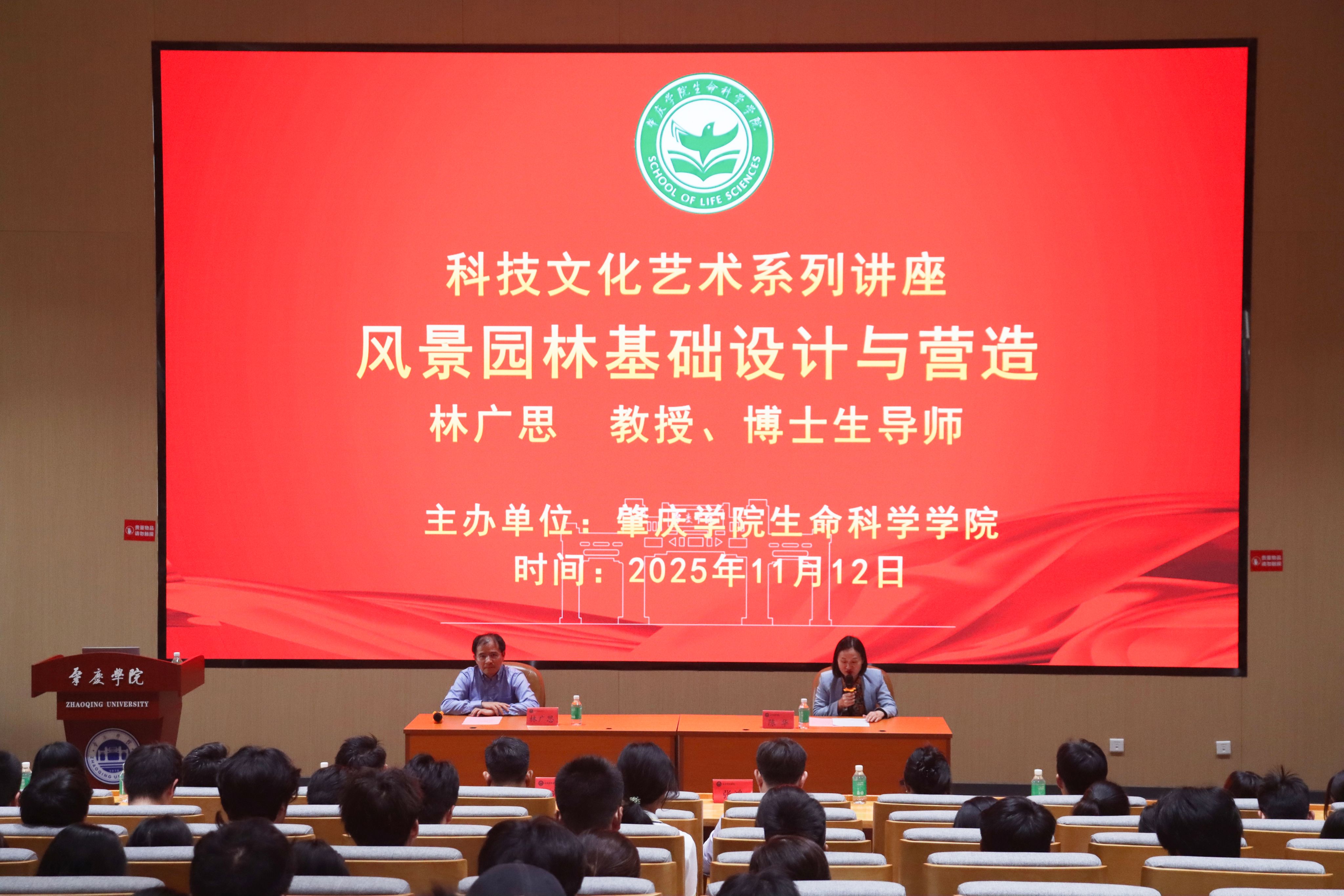 本网讯 11月12日,华南理工大学建筑学院副院长、风景园林系教授林广思应邀来校,在新校园学术报告厅作了题为“风景园林基础设计与营造”的专题讲座。讲座由陈华副院长主持,生命科学学院师生代表200余人参与。